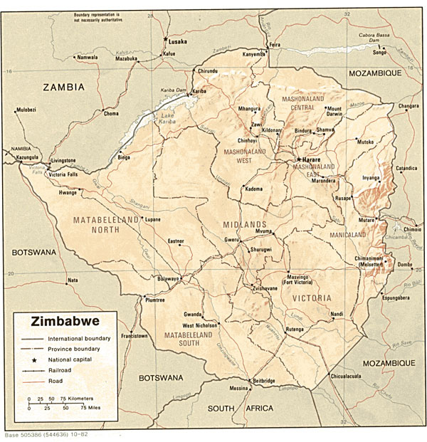 Зимбабве – подробная рельефная и административная карта. Детальная рельефная и административная карта Зимбабве.