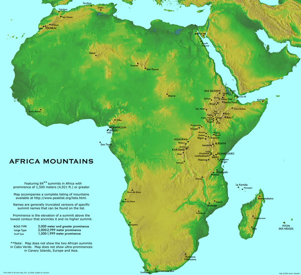 Большая подробная карта гор Африки. Большая подробная карта гор Африки.