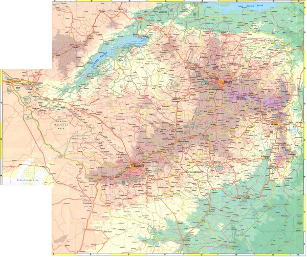 Зимбабве – большая подробная автодорожная и физическая карта. Большая детальная автодорожная и физическая карта Зимбабве.
