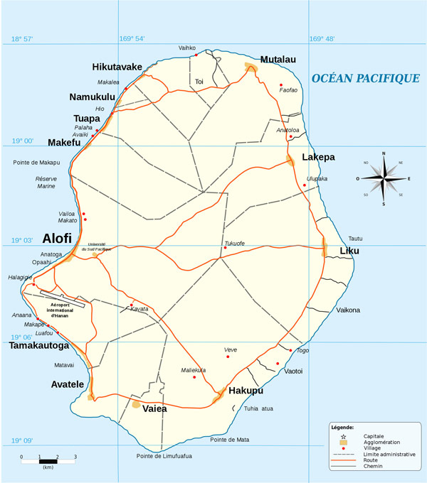 Ниуэ – большая подробная автодорожная карта. Большая детальная карта автодорог Ниуэ.