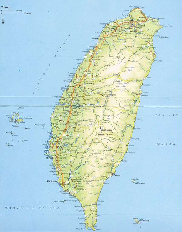 Тайвань – большая детальная карта автодорог. Большая подробная карта автомобильных дорог Тайвани.
